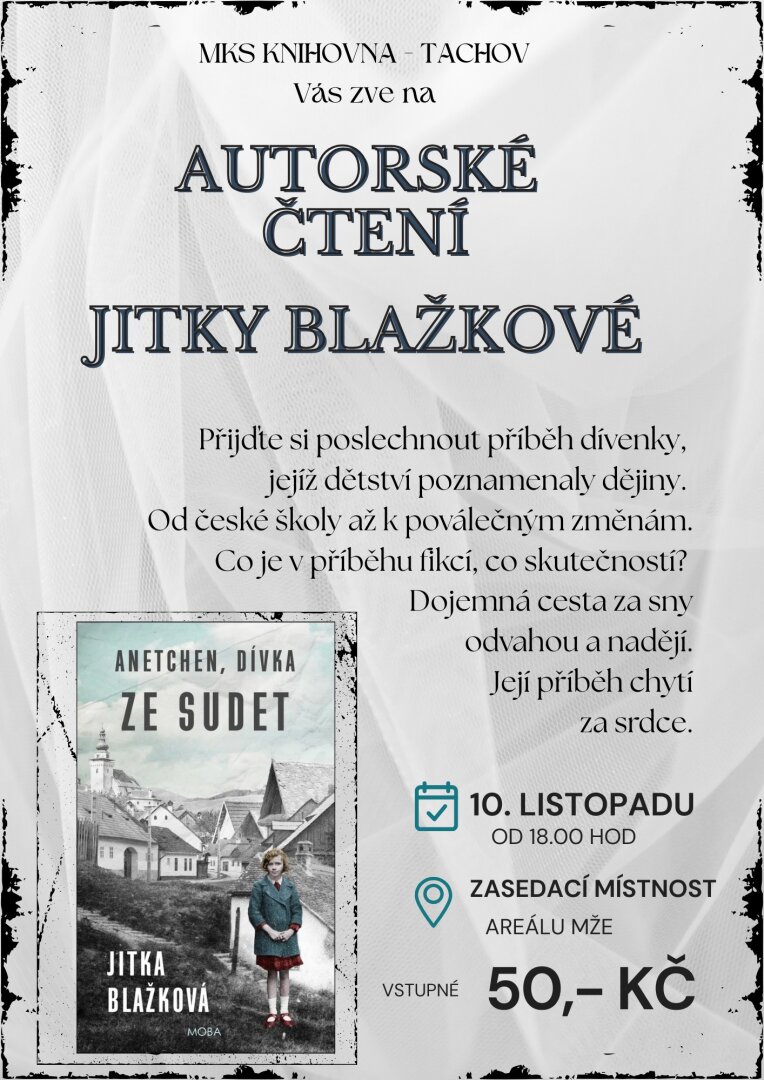 | Kde: | Knihovna - odbor MKS Tachov Hornická 1695, Tachov 347 01 GPS: 49.79840469N, 12.63005161E Podrobnosti |