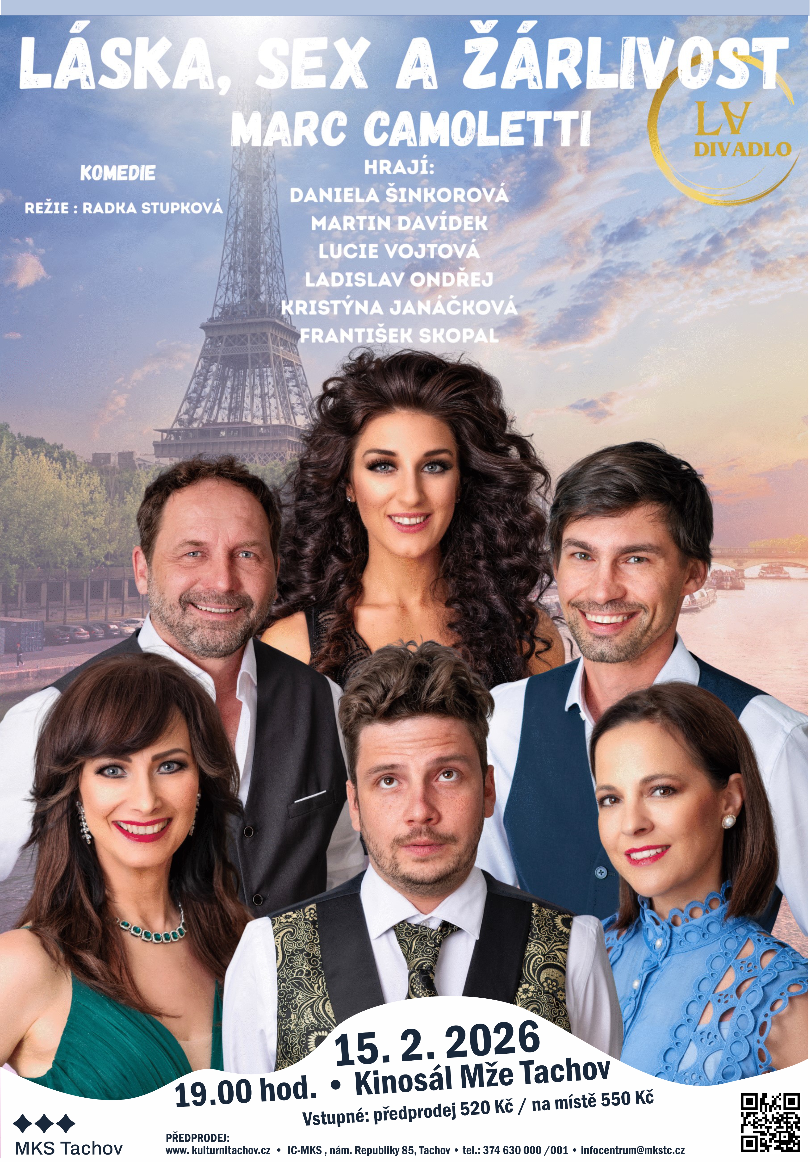 Co má udělat manžel, který zjistí, že ho jeho nevěrná manželka podvádí? Může svého soka zabít jako v romantických dobách. Může ho nechat zabít, jak se to dělá v dnešní "akční době". Nebo mu může oplatit stejnou mincí: totiž na oplátku svést jeho věrnou ženu. V Camolettiho komedii Láska, sex a žárlivost se setkáme se zápletkami důvěrně známými z vlastního manželství. Navíc budeme překvapeni, jak mistrovsky se budou rozvíjet.