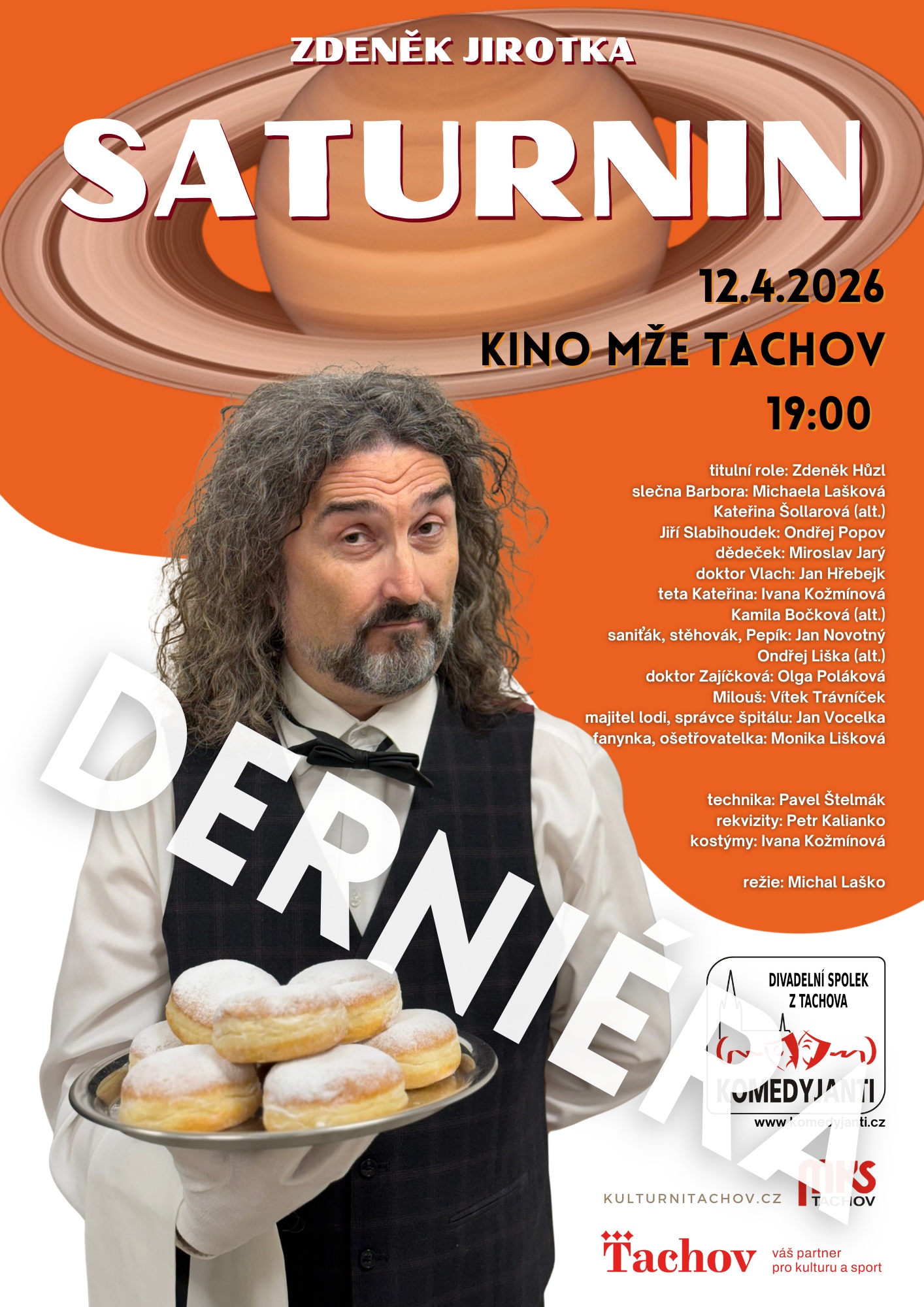Srdečně Vás všechny zveme na rozloučení - derniéru divadelního představení Saturnin podle humoristického románu Zdeňka Jirotky.