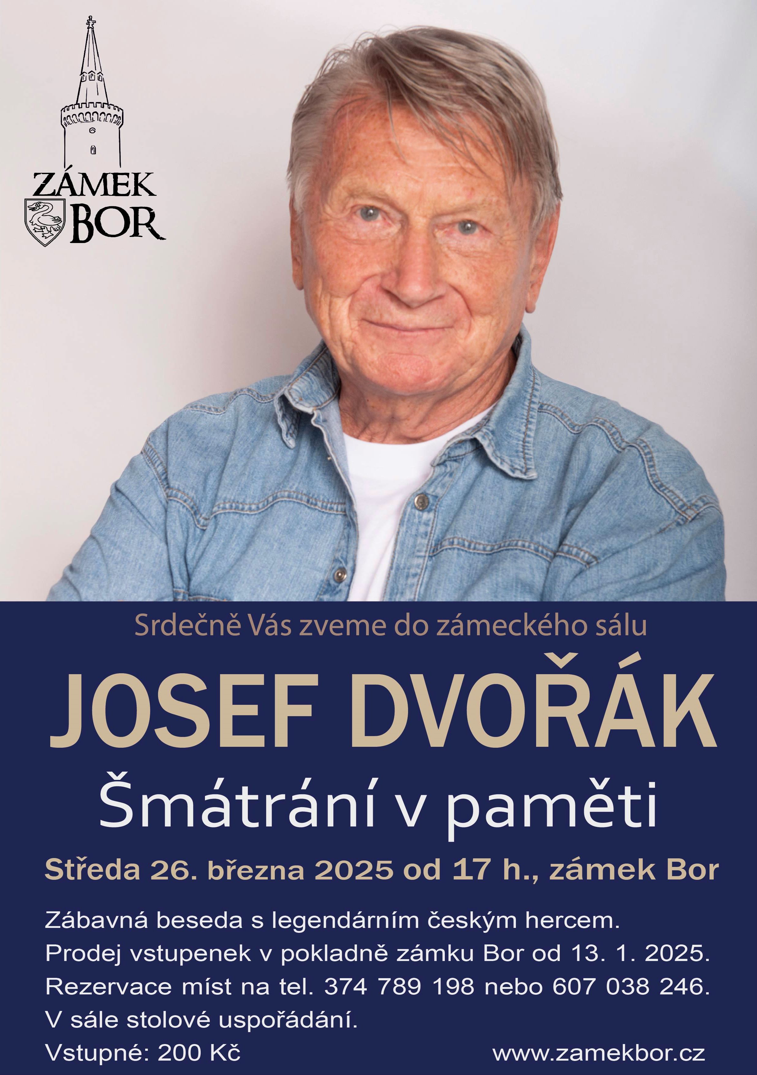 Srdečně Vás zveme do zámeckého sálu na zábavnou besedu s hercem a komikem Josefem Dvořákem, který je jedním z nezvýraznějších českých herců a během své kariéry se objevil v mnoha filmech a seriálech. Svůj hlas také propůjčil nezapomenutelnému Maxipsu Fíkovi.