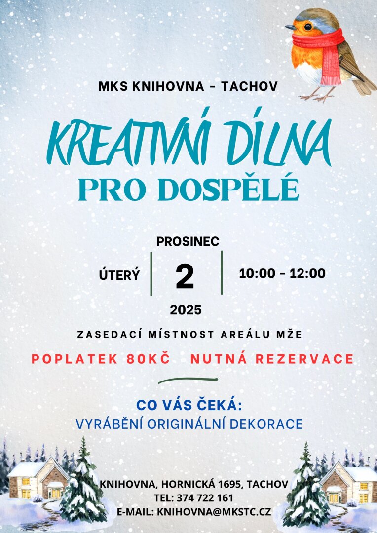 Kreativní dílna je zpoplatněna částkou 80 Kč.