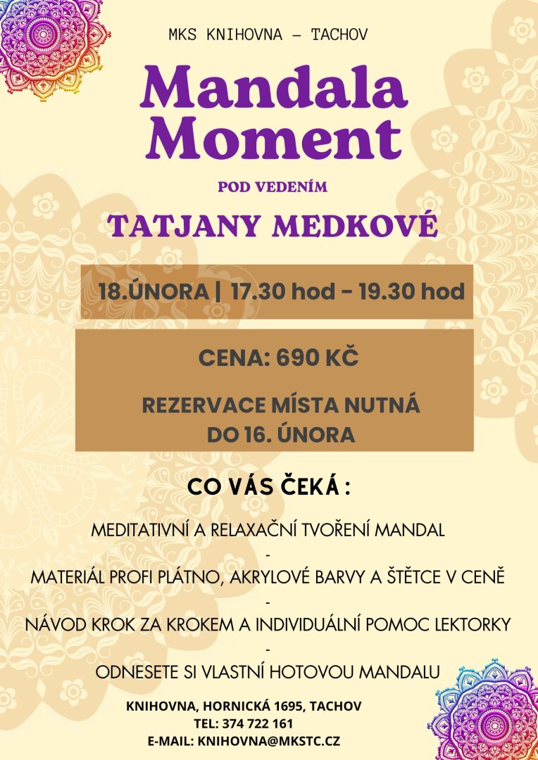 Meditativní malování mandal pod vedením zkušené lektorky – odnesete si vlastní dílo.