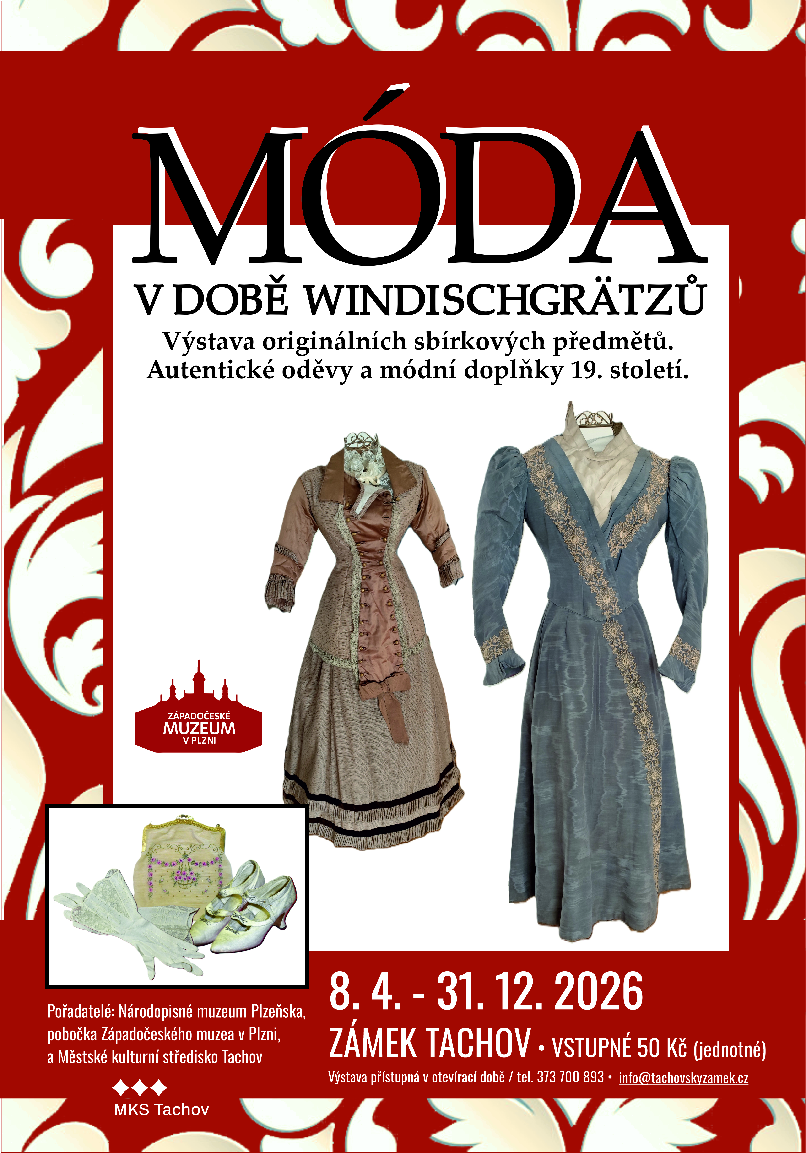 Expozice nabídne pohled na krásu v detailu, tichou řeč doplňků i promyšlené vrstvy elegance, jež formovaly každodenní i slavnostní podobu odívání v době největšího rozkvětu rodu Windischgrätzů. Oděv zde není pouze estetickým prvkem, ale také výrazem společenského postavení, osobního vkusu i dobových konvencí. Móda tak vystupuje jako svébytný jazyk, prostřednictvím něhož lze číst příběh celé epochy. Výstava symbolicky navazuje na historické dědictví Tachovského zámku jako někdejšího šlechtického sídla a vrací do jeho prostor atmosféru doby, která zde po generace utvářela společenský i kulturní život.