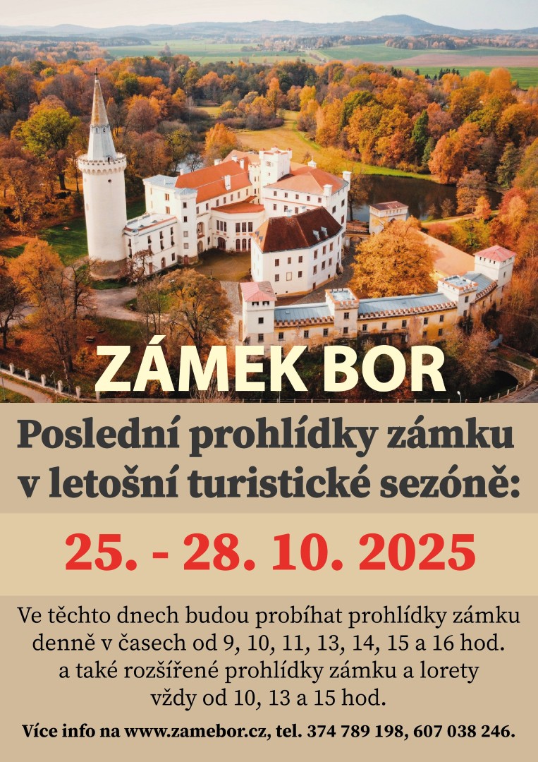 Více informací na tel 374 789 198, 607 038 246 nebo na www.zamekbor.cz