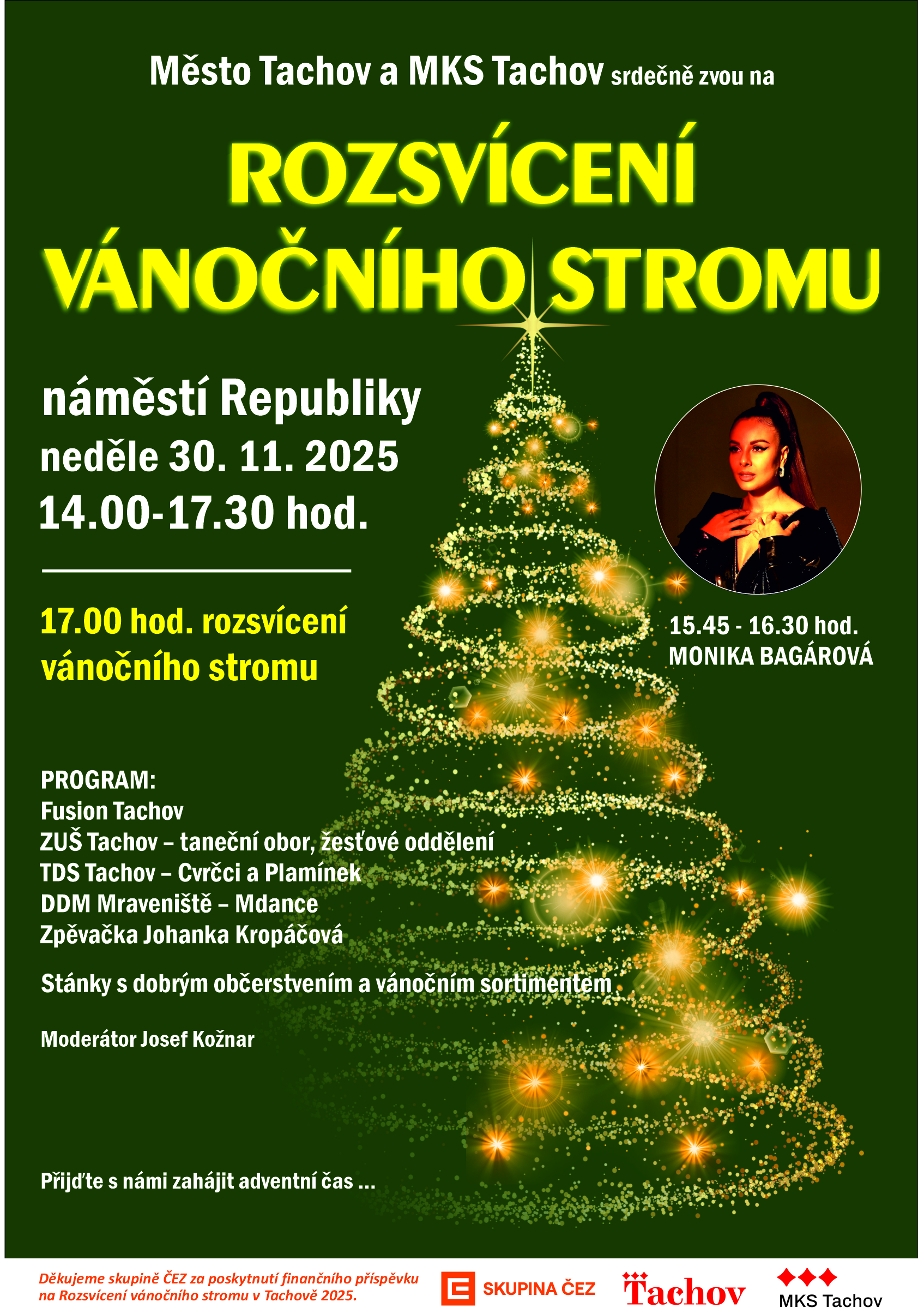 V pestrém programu se představí zpěvačky Monika Bagárová a Johanka Kropáčová, žáci ZUŠ Tachov – hudební a taneční obor, žesťové oddělení, přípravky Tachovského dětského sboru – Cvrčci a Plamínek, DDM Mraveniště a Fusion Tachov.