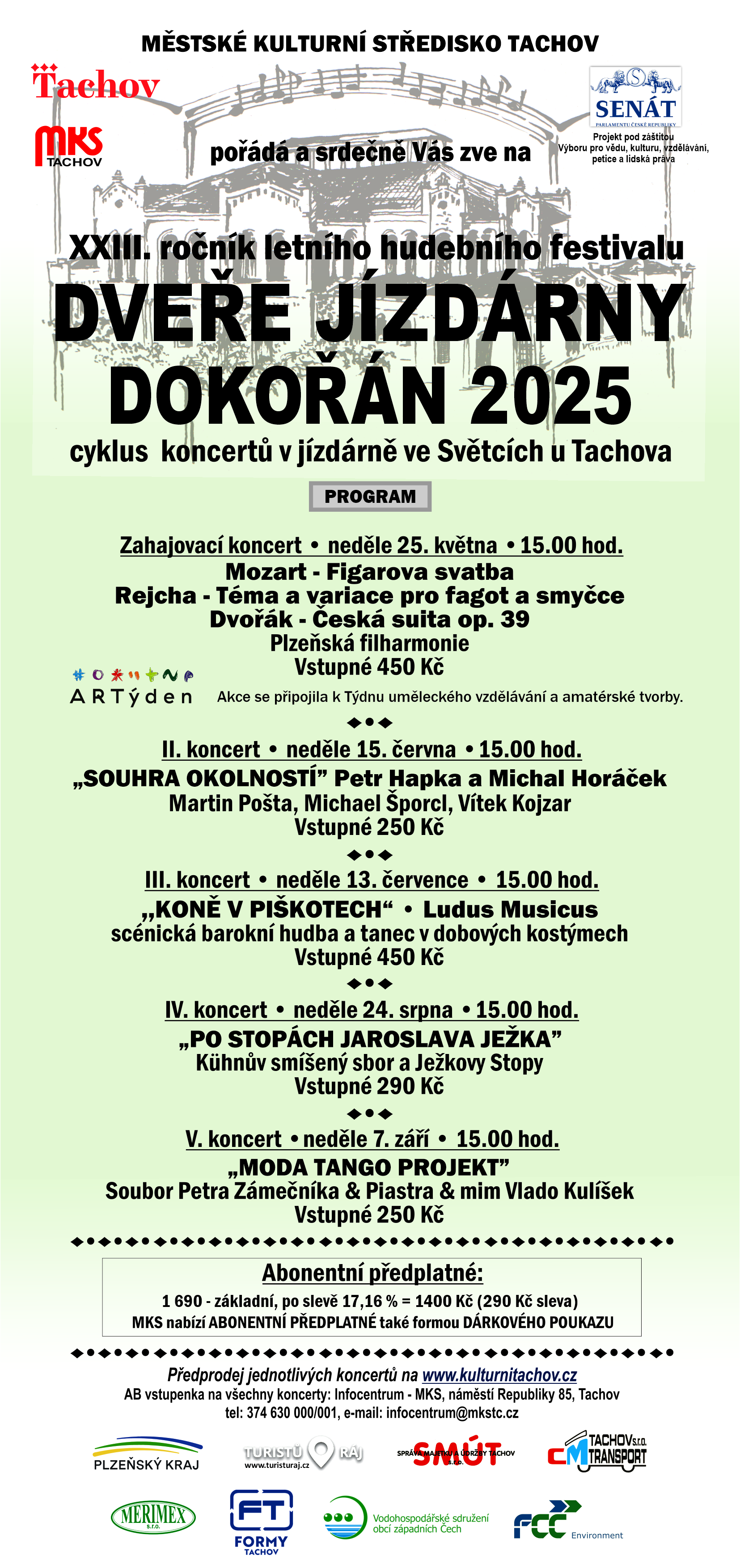 Jednotlivé koncerty v prodeji on-line: www.kulturnitachov.cz.