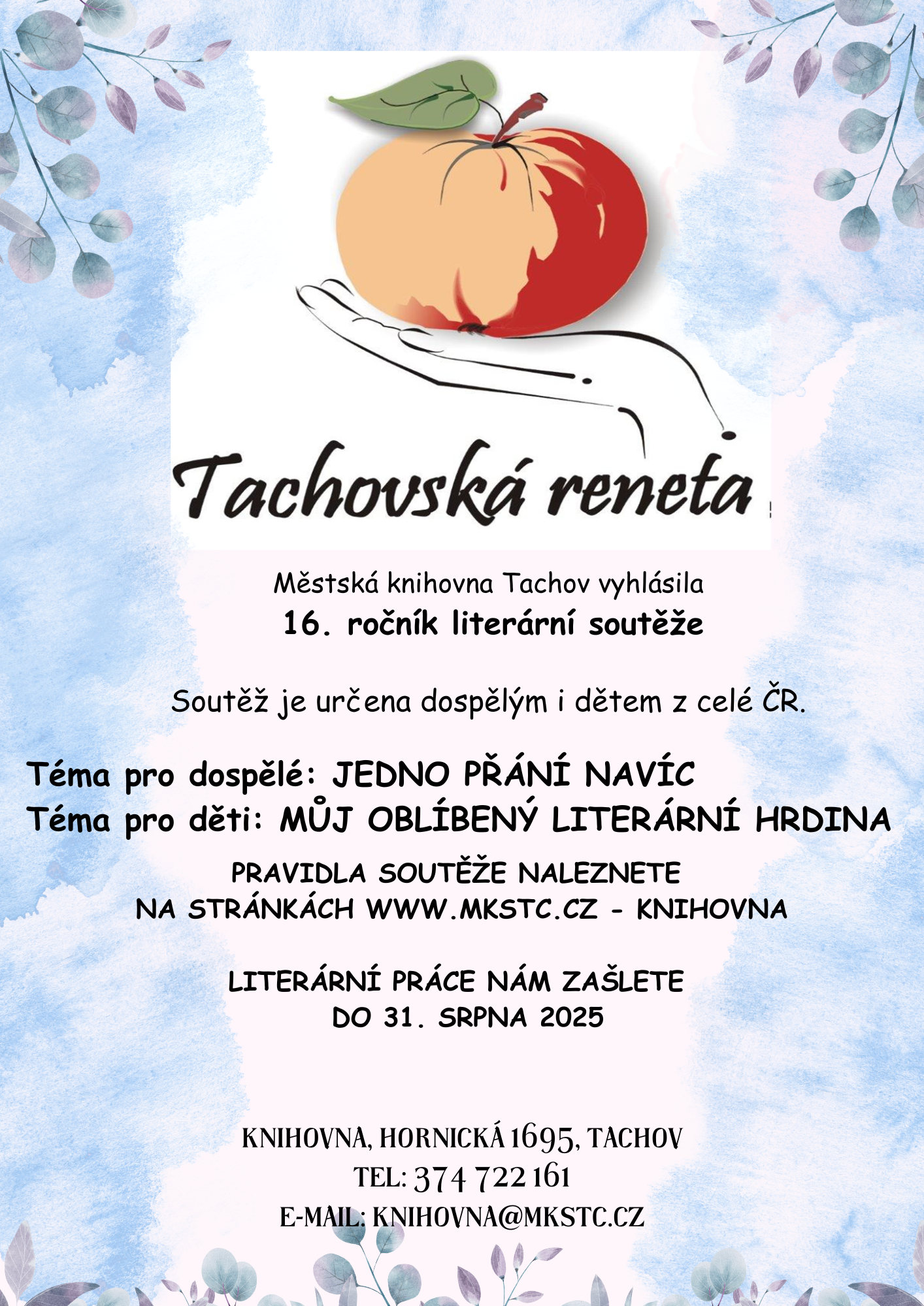 Městská knihovna Tachov vyhlašuje XVI. ročník literární soutěže. Soutěž je určena začínajícím autorům z celé ČR a v letošním roce se do ní mohou opět zapojit i děti.