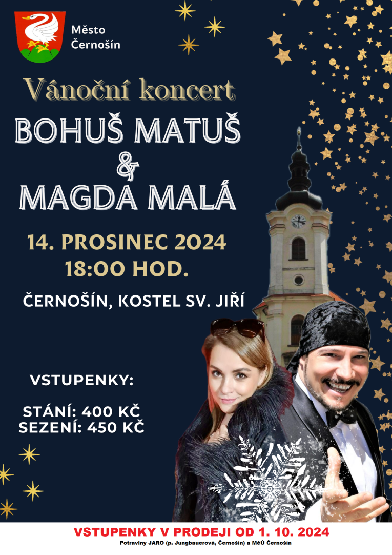 Vstupenky na tento koncert jsou již v prodeji na MÚ Černošín nebo Smíšené zboží JARO (p. Jungbauerová, ul. Svojšínská 215, Černošín)