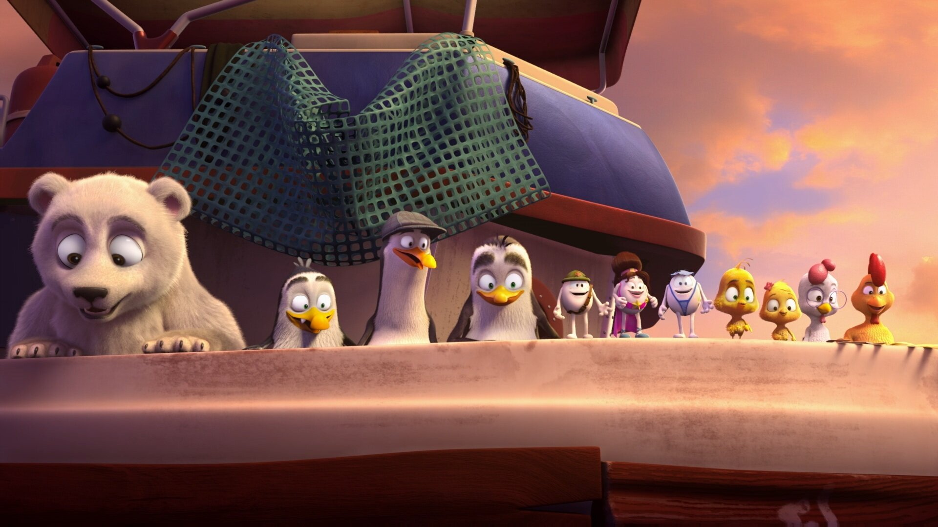 Co může dělat malé kuřátko na jižním pólu? Hlavně se snažit nezmrznout! Když se na slepičí farmě jednoho dne objeví neobvyklí návštěvníci - trojice tučňáků a malé lední medvídě, místní zvířata musí spojit síly, aby novým kamarádům pomohla najít cestu zpátky domů. Kohout jménem Toto se proto se svou rodinou vydá na bláznivou cestu až na samotný jižní pól. Čeká je cesta plná potrhlých kosatek, pirátů, rozzuřených tuleňů i surfujících tučňáků. Na konci světa však nenajdou jen rodinu malého medvíděte, ale i dobrodružství, které dokáže, že společně zvládnou úplně všechno.