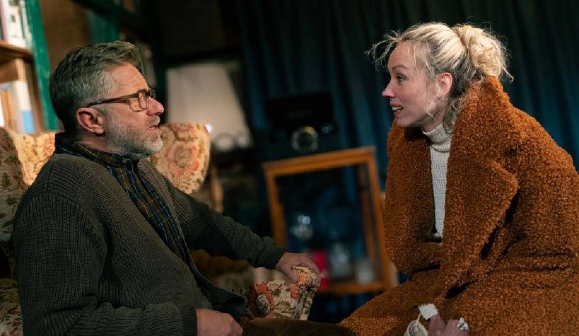 Venku je vánice a skutečná sněhová kalamita, která působí jako konec světa. Vycházet z domu se nejenom nedoporučuje, ale dokonce je to i zakázané. A přesto někdo buší na Patrickovy dveře. Sousedka Judith si totiž nutně potřebuje vypůjčit pár vajec. Značně excentrická žena se v Patrikově domě chová jako doma, neváhá kritizovat jeho návyky i životní postoje, bezprostředně komentovat sochu zdobící obývací pokoj a už vůbec se nebojí narušit jeho poklidný večer. Zoufalý Patrick se pokusí dostat Judith z domu za pomoci policie, ta ho ale upozorní, že je jeho povinností nechat ženu u sebe a nevystavovat ji nebezpečí, které by jí hrozilo kdyby dům opustila. A tak musí tito dva naprosto odlišní lidé, kteří by se za normálních okolností jen těžko sblížili, společně strávit den a noc – dlouhými rozhovory, pitím i tancem.